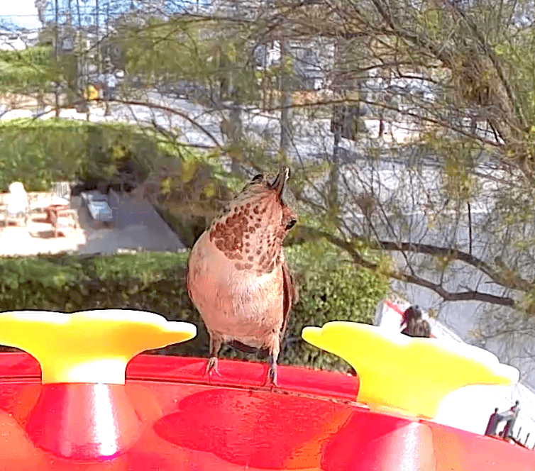| Behavior | Feeds less often than Jammy, but consistently perches and feeds for longer stints |